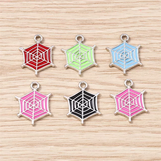 10pcs Colorful Enamel Spider Web Charms 16x19mm for Jewelry Making