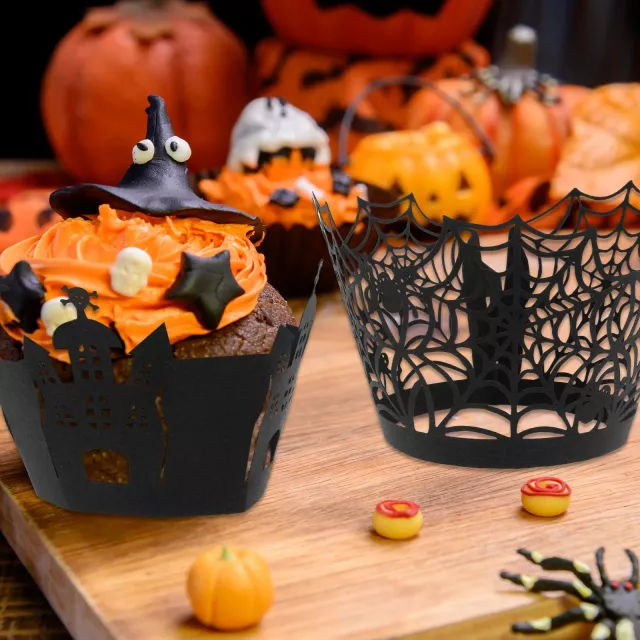 These cupcake wrappers are best used during the fall season, especially around Halloween, but their versatile design makes them a great choice for gothic weddings, moody graduation parties, or birthday celebrations with a spooky twist. Simply bake your cupcakes or muffins as usual and slide them into these wrappers for an instant upgrade.
