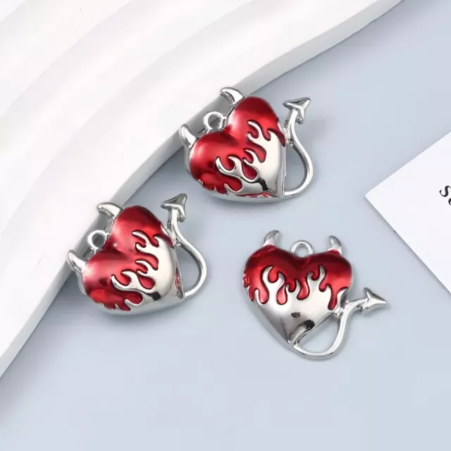 5pcs Halloween Heart Enamel Charms – Funny Demon DIY Jewelry Pendants